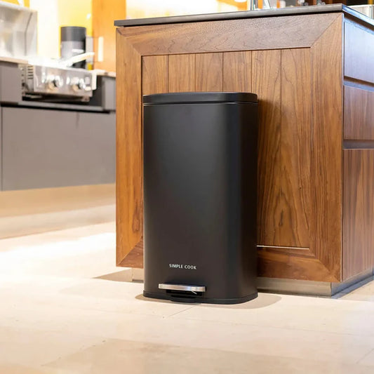 Basurero Con Pedal Negro Mate 30 Lts Simple Cook