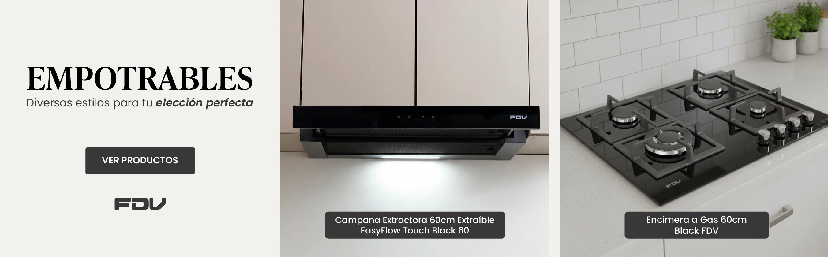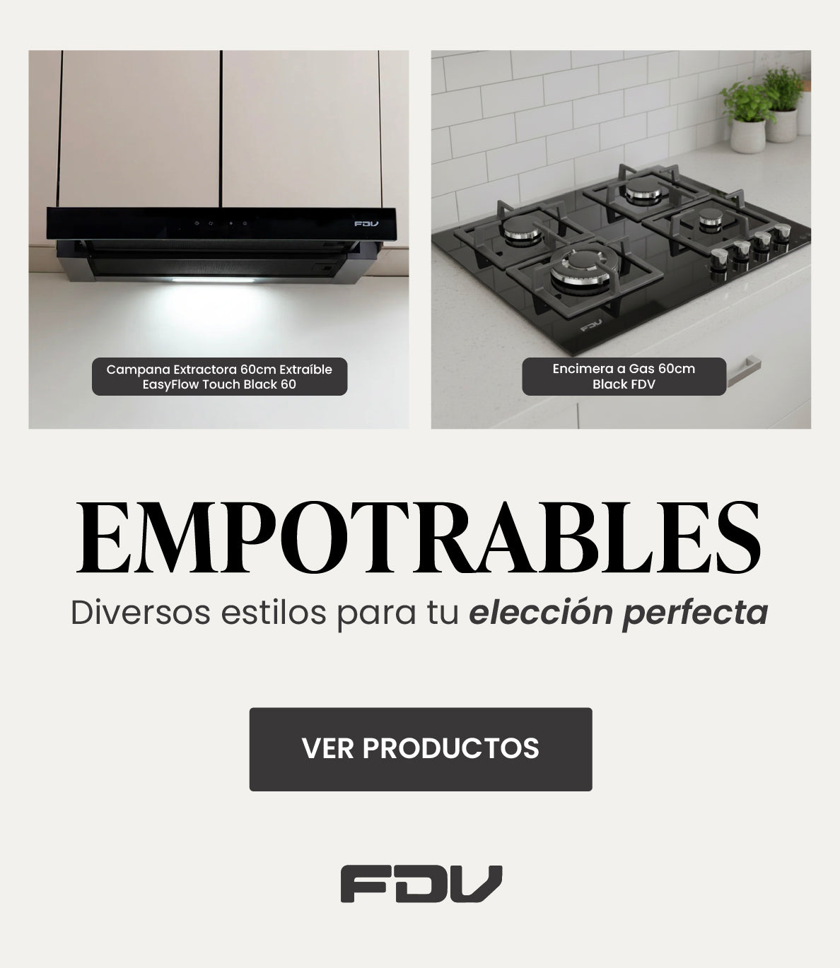 Combo Encimera a Gas 60cm Black + Campana Extraible 60cm Twin Black Touch FDV