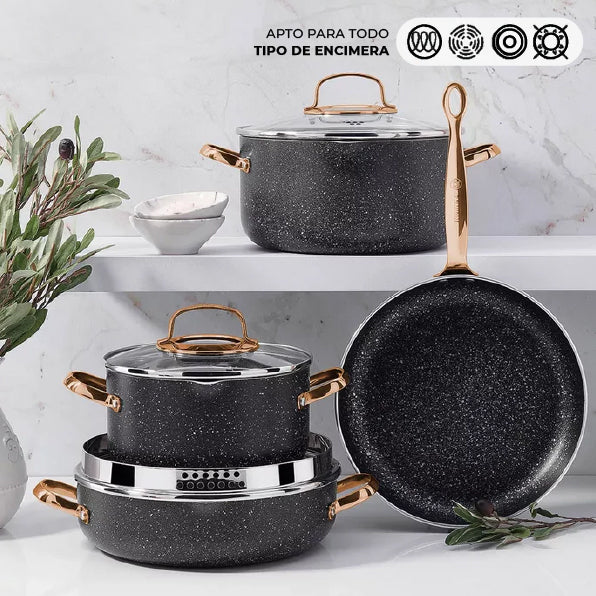 Juego de Ollas 7 Piezas Galaksi Rose Gold A1372 KORKMAZ