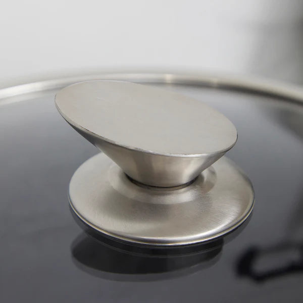 - 👁️ Tapas de vidrio templado Con bordes metálicos y salida de vapor para una cocción eficiente sin levantar la tapa. Resisten golpes térmicos y permiten observar el proceso de cocción.