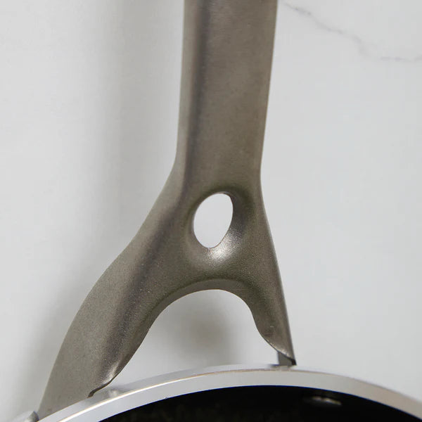 - 🖐️ Mangos ergonómicos Cómodos al tacto y seguros durante la cocción. Diseño curvado con acabado mate champagne que complementa la estética general.