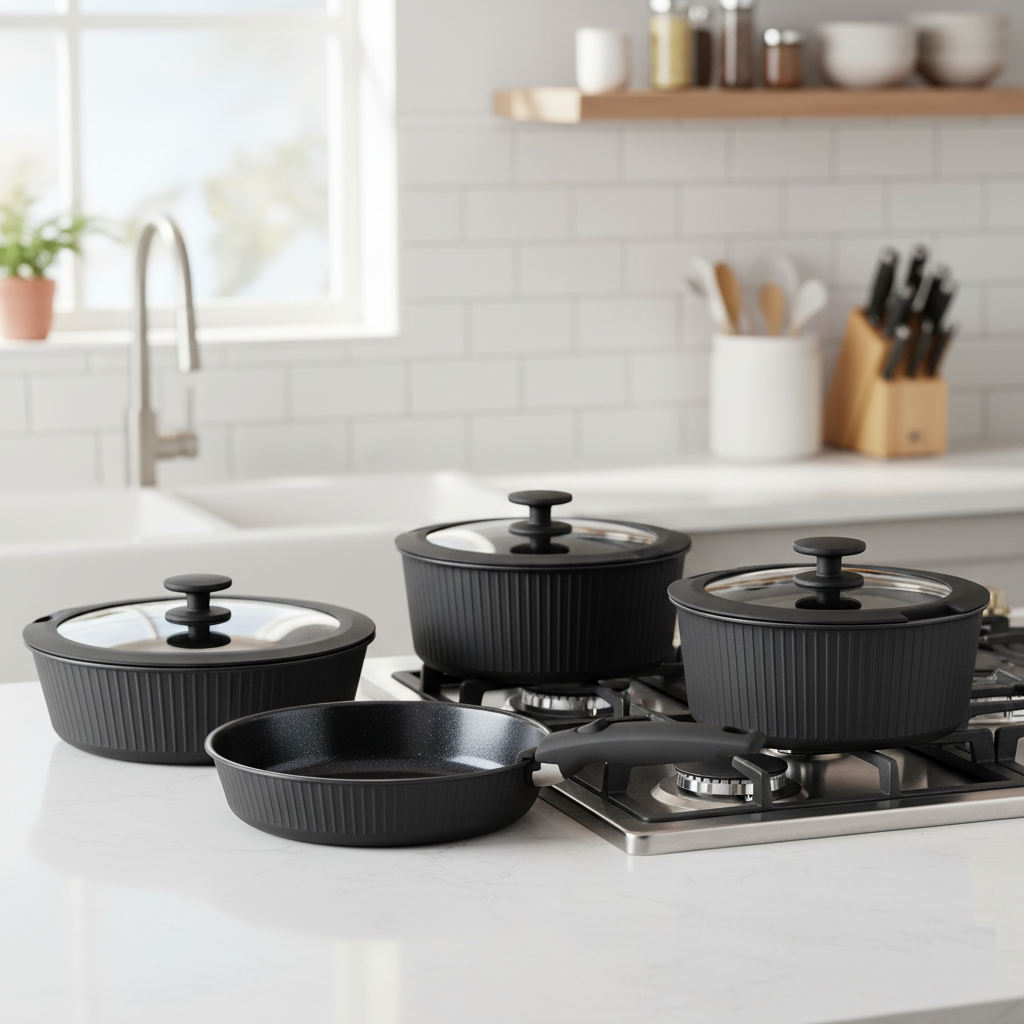El Juego de Ollas Nova Pratika Black Korkmaz es la elección ideal para quienes buscan resistencia, eficiencia y diseño contemporáneo, garantizando resultados excepcionales en cada comida.