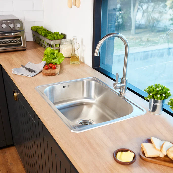 - Diseño de 1 cuba profunda Permite lavar cómodamente vajilla, utensilios grandes o alimentos, optimizando el espacio de trabajo.