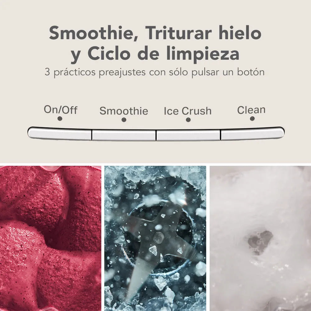 3 programas automáticos: Smoothie, Triturar Hielo y Limpieza
