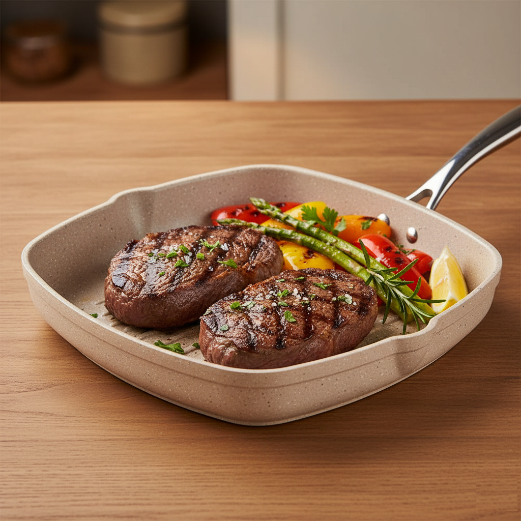 La Sartén Cuadrada Granita A1268 Korkmaz redefine la forma de cocinar: más espacio, más control y más sabor.