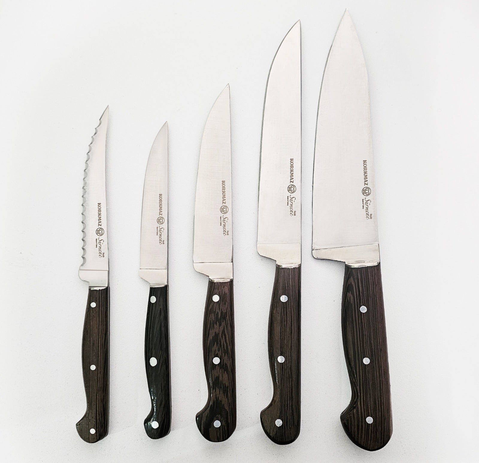 Equípate con un auténtico set profesional de alta gama gracias al Set Sürmene A5502 de 6 piezas de Korkmaz. Este conjunto, inspirado en la legendaria tradición cuchillera de Sürmene, ofrece precisión, elegancia y resistencia. Perfecto para chefs exigentes y aficionados apasionados.